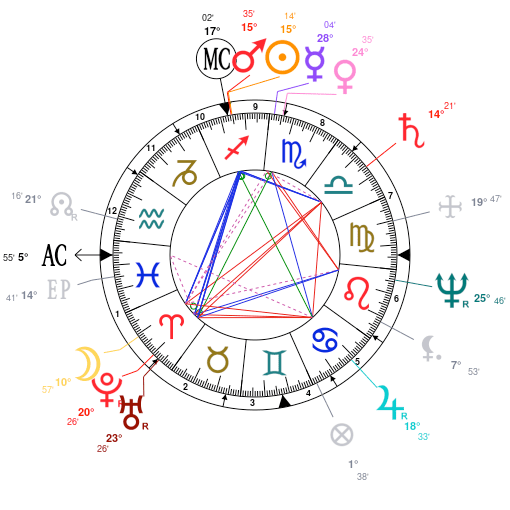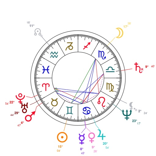 Su Sol (yo escencial) y Marte (fuerza interior) en el signo de Sagitario en la Casa 9 ( representa aspectos vinculados con el conocimiento superior como: la filosofía, religión, o espiritualidad), aunque muy cerca del Medio Cielo ( vocación o profesión) proyectando su fuerza e impulso creativo con una visión a larga distancia, proyectando su trabajo más allá de lo inmediato o cercano, que va hacia más personas, más allá de sus fronteras y nos muestra de forma clara en sus obras la psicología y fuerza interior de los personajes, que se percibe al estar frente a sus obras.