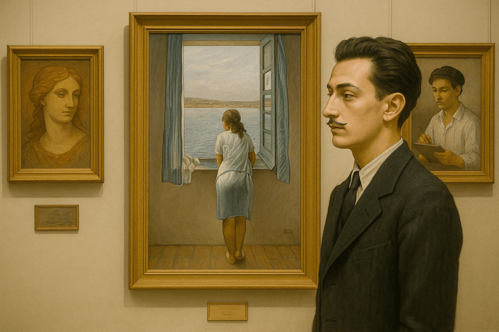 Aunque alejado del surrealismo que lo haría famoso, esta obra ya deja entrever una preocupación constante en Dalí: la visión, el umbral entre el interior y el exterior, entre lo conocido y lo inabarcable. Es una obra de transición y autenticidad técnica, donde Dalí, todavía alejado del delirio onírico, se muestra como un pintor que domina los principios clásicos del arte. A través de una composición silenciosa, nos invita a contemplar —junto con la figura de su hermana— el horizonte de la existencia y la promesa del mundo exterior. Una joya de su etapa taurina: sensual, contemplativa, anclada en el goce de la forma y la luz real.