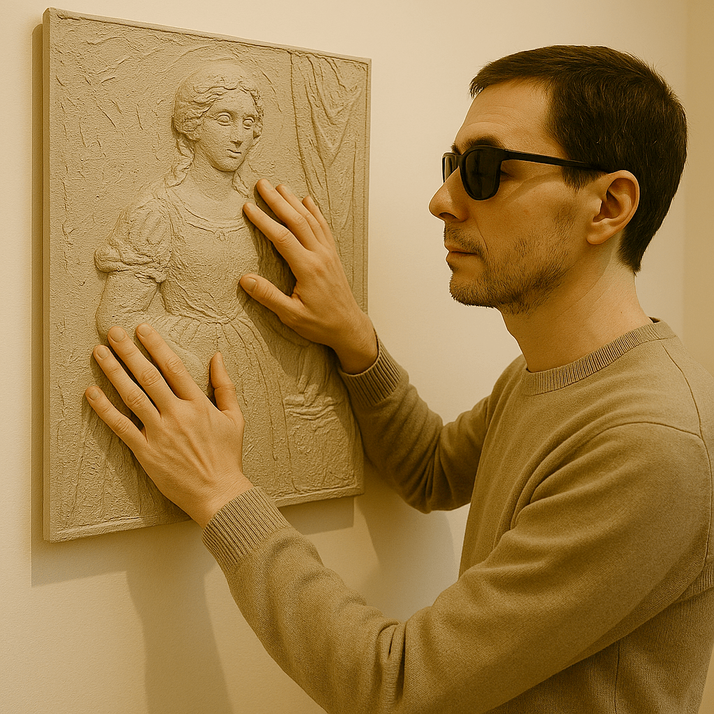 - Obras táctiles, reproducciones en relieve o maquetas accesibles.