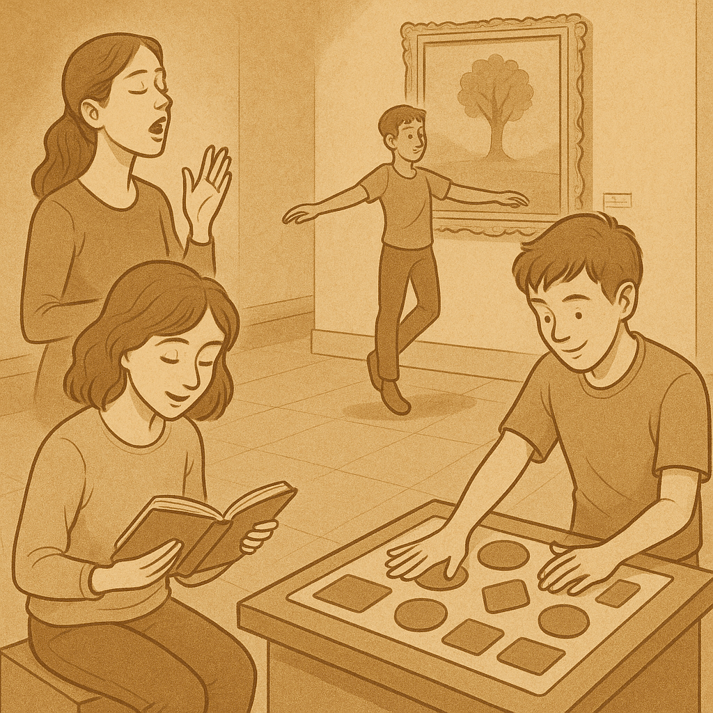 - Talleres sensoriales o de arte con objetos o reproducciones manipulables.