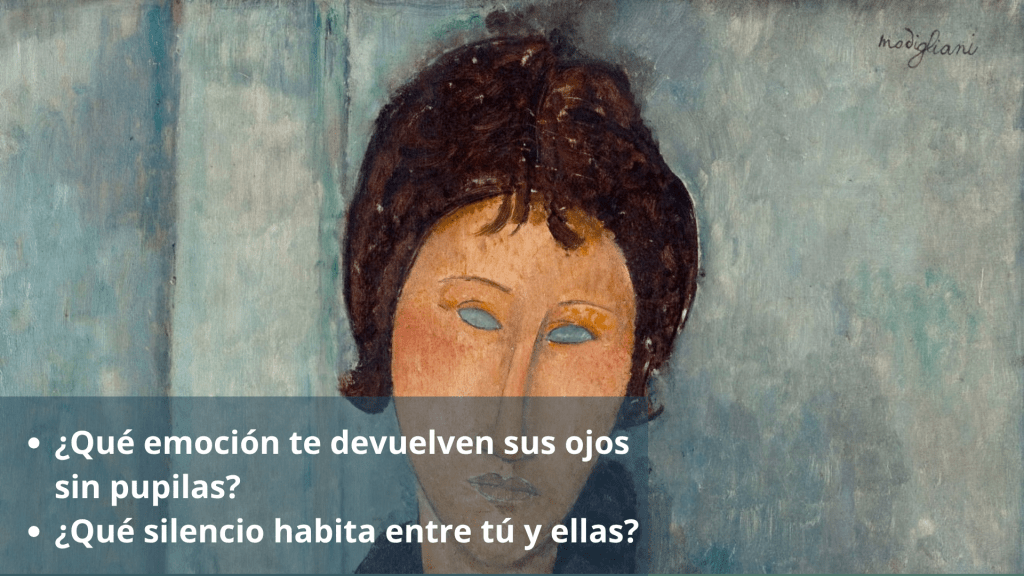 Esta llave invita a reconocer la mirada interior del artista y la del observador: ¿Qué parte de ti se refleja en estos rostros? ¿Qué emoción te devuelven sus ojos sin pupilas? ¿Qué silencio habita entre tú y ellas? Mirar a las mujeres de Modigliani es mirarse a una misma: descubrir en la serenidad de sus líneas la belleza que habita en la vulnerabilidad, la fortaleza que hay en la suavidad, y la profundidad que se oculta tras lo simple.
